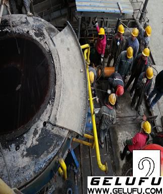 制作清晰的標(biāo)記,依次吊出各合金瓦(用M20的吊環(huán),因?yàn)楦骱辖鹜唛g距小,應(yīng)用M20的螺栓制作一個(gè)短一些的吊環(huán))。