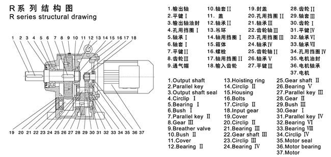 R系列斜齒輪硬齒面減速機型號: