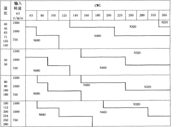3 減速器采用蝸輪蝸桿潤(rùn)滑油。一般情況下潤(rùn)滑油牌號(hào)可由下表直接選取。