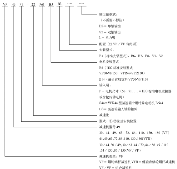 VF系列蝸輪蝸桿減速機(jī)產(chǎn)品簡(jiǎn)介及型號(hào)表示例