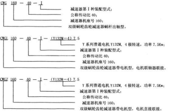 注:CWGL、CWGZ減速機可以配YEJ系列制動電機,配此系列電機時須與本公司技術部門