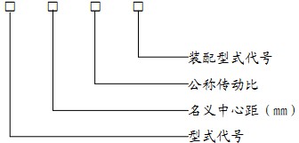 減速機(jī)的型號(hào)由型式代號(hào),名義中心距(末級(jí)中心距),公稱傳動(dòng)比,裝配型式代號(hào)組成。