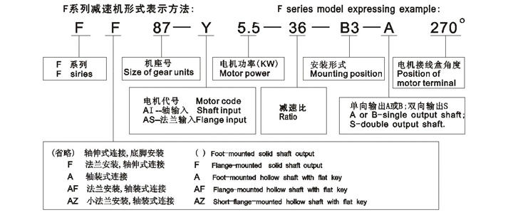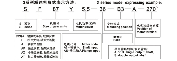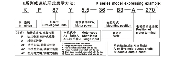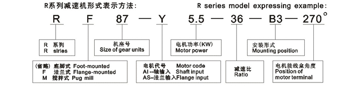 各係列減速機(jī)型號(hào)選型標(biāo)示規(guī)則舉例