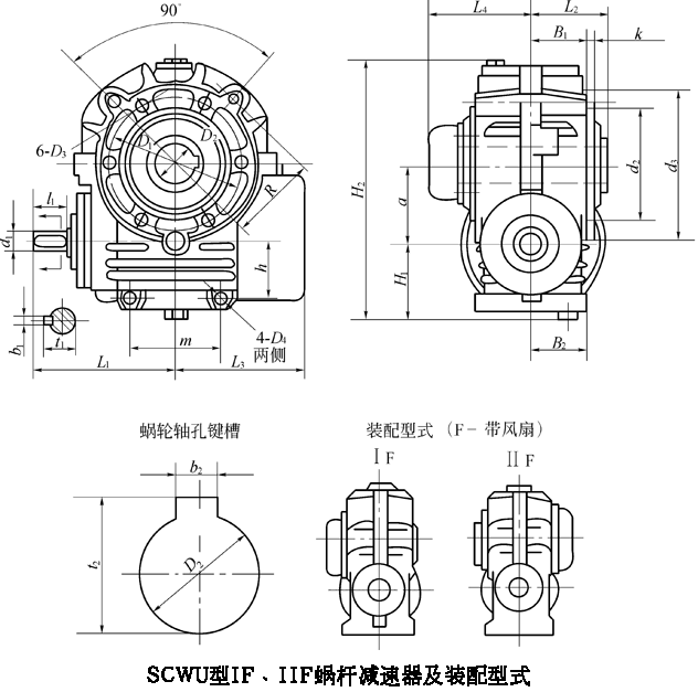 SCWU125、SCWU140、SCWU160、SCWU180、SCWU200、SCWU225、SCWU250、SCWU280、SCWU315、型減速機(jī)IF、IIF裝配型式主要尺寸JB/T6387-1992