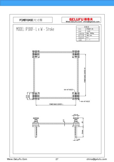 POWER BASE 尺寸圖 參數(shù)表 型號 類型 標準 負載重量 最大行程 齒輪組件 比例 eghtebas.com 27 china@gelufu.com