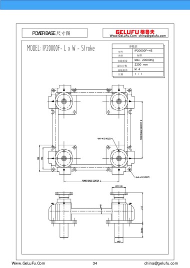 POWER BASE 尺寸圖 參數(shù)表 型號 類型 標(biāo)準(zhǔn) 負(fù)載重量 最大行程 齒輪組件 比例 eghtebas.com 34 china@gelufu.com