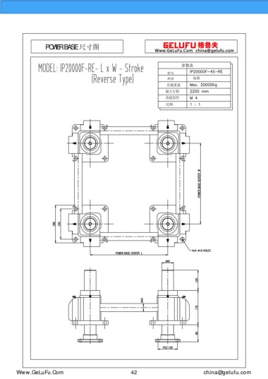 POWER BASE 尺寸圖 參數(shù)表 型號(hào) 類型 標(biāo)準(zhǔn) 負(fù)載重量 最大行程 齒輪組件 比例 eghtebas.com 42 china@gelufu.com
