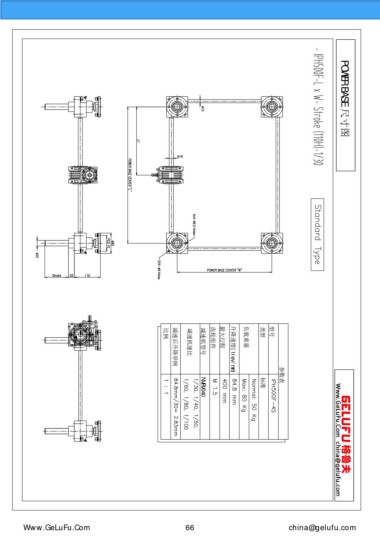 POWER BASE 尺寸圖 減速機速比 標準 NMRV040 eghtebas.com 比例 減速后升降舉例 66 減速機型號 齒輪組件 最大行程 升降速度(1rev/mm) 負載重量 類型 型號 參數(shù)表 china@gelufu.com