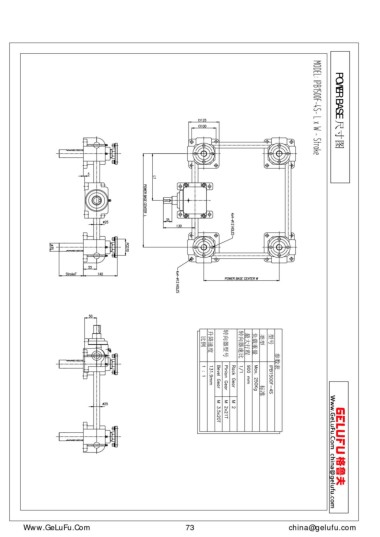 POWER BASE 尺寸圖 標(biāo)準(zhǔn) eghtebas.com 73 比例 升降速度 轉(zhuǎn)向器型號 轉(zhuǎn)向器速比 最大行程 負(fù)載重量 類型 型號 參數(shù)表 china@gelufu.com