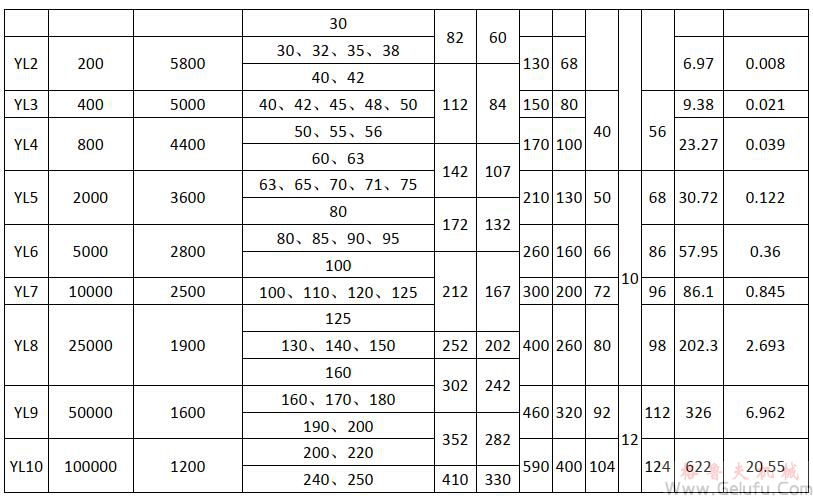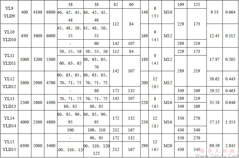 YL型——基本型,YLD型——有對中榫型。YL型結(jié)構(gòu)、YLD型結(jié)構(gòu)見下圖,基本參數(shù)和主要尺寸見下表。