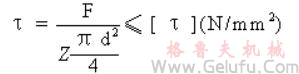 [τ]——螺栓材料的許用剪應(yīng)力,載荷穩(wěn)定時(shí),可取[τ]=0.4σS,載荷變化時(shí),可取