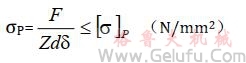 [σ]P——許用擠壓應(yīng)力,N/mm2,載荷穩(wěn)定時(shí),對鋼可取[σ]P=(0.8~1)σS,對鑄鐵可取[σ]P=0.8[σ]b;載荷變化時(shí),對鋼可取[σ]P=(0.5~0.65)[σ]S;對鑄鐵可取