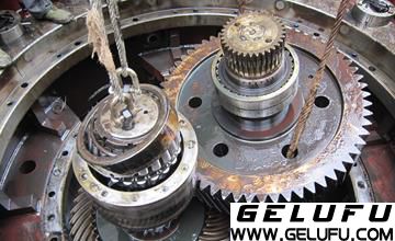 減速機(jī)回裝是拆除的反工序,遵循先出后進(jìn)的規(guī)律,回裝時(shí)必須細(xì)心,不得遺忘任何部件,尤其是油管,回裝時(shí)必須繪制各部件的結(jié)構(gòu)圖,按圖逐項(xiàng)落實(shí)。回裝中 困難的是三聯(lián)齒輪系的安裝,因?yàn)橐环矫嫒齻€(gè)齒輪內(nèi)部要與下面的傳動(dòng)齒輪軸同時(shí)嚙合,另一方面三個(gè)齒輪必須與大齒圈同時(shí)嚙合,而下面的齒輪軸有一定的活動(dòng)間隙,所以安裝時(shí)必須放慢速度,必須使齒輪系保持水平,同時(shí)上下都有人時(shí)時(shí)查看,及時(shí)糾偏。