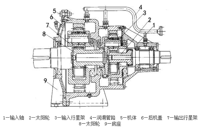 減速機(jī)采用漸開(kāi)線行星齒輪傳動(dòng),合理利用內(nèi)、外嚙合、功率分流,