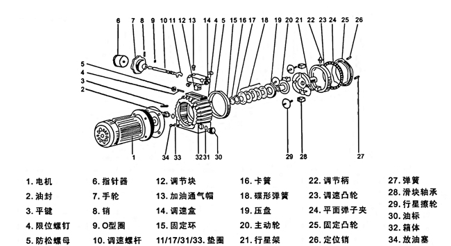 5、變速機的輸出轉矩和功率時隨著輸出轉數的變化而變化,具有變轉矩、變功率的機械特征。