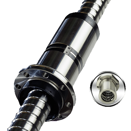 常用的循環(huán)方式有兩種:外循環(huán)和內(nèi)循環(huán)。滾珠在循環(huán)過程中有時與絲杠脫離接觸的稱為外循環(huán);始終與絲杠保持接觸的稱為內(nèi)循環(huán)。滾珠每一個循環(huán)閉路稱為列,每個滾珠循環(huán)閉路內(nèi)所含導程數(shù)稱為圈數(shù)。內(nèi)循環(huán)滾珠絲杠副的每個螺母有2列、3列、4列、5列等幾種,每列只有一圈;外循環(huán)每列有1.5圈、2.5圈和3.5圈等幾種。1) 外循環(huán)外循環(huán)是滾珠在循環(huán)過程結束后通過螺母外表面的螺旋槽或插管返回絲杠螺母間重新進入循環(huán)。外循環(huán)滾珠絲杠螺母副按滾珠循環(huán)時的返回方式主要有端蓋式、插管式和螺旋槽式。常用外循環(huán)方式(a)端蓋式;(b)插管式;(c)螺旋槽式(a)所示是端蓋式,在螺母上加工一縱向孔,作為滾珠的回程通道,螺母兩端的蓋板上開有滾珠的回程口,滾珠由此進入回程管,形成循環(huán)。(b)所示為插管式,它用彎管作為返回管道,這種結構工藝性好,但是由于管道突出螺母體外,徑向尺寸較大。(c)所示為螺旋槽式,它是在螺母外圓上銑出螺旋槽,槽的兩端鉆出通孔并與螺紋滾道相切,形成返回通道,這種結構比插管式結構徑向尺寸小,但制造較復雜。外循環(huán)滾珠絲杠外循環(huán)結構和制造工藝簡單,使用廣泛。其缺點是滾道接縫處很難做得平滑,影響滾珠滾道的平穩(wěn)性。2) 內(nèi)循環(huán)所示為內(nèi)循環(huán)滾珠絲杠。內(nèi)循環(huán)均采用反向器實現(xiàn)滾珠循環(huán),反向器有兩種類型。(a)所示為圓柱凸鍵反向器,它的圓柱部分嵌入螺母內(nèi),端部開有反向槽2。反向槽靠圓柱外圓面及其上端的圓鍵1定位,以保證對準螺紋滾道方向。所示為扁圓鑲塊反向器,反向器為一般圓頭平鍵鑲塊,鑲塊嵌入螺母的切槽中,其端部開有反向槽3,用鑲塊的外輪廓定位。兩種反向器比較,后者尺寸較小,從而減小了螺母的徑向尺寸及縮短了軸向尺寸。但這種反向器的外輪廓和螺母上的切槽尺寸精度要求較高。 1、與滑動絲杠副相比驅動力矩為1/3 由于滾珠絲杠副的絲杠軸與絲杠螺母之間有很多滾珠在做滾動運動,所以能得到較高的運動效率。與過去的滑動絲杠副相比驅動力矩達到1/3以下,即達到同樣運動結果所需的動力為使用滾動絲杠副的1/3。在省電方面很有幫助。 2、高精度的保證 滾珠絲杠副是用日本制造的世界 高水平的機械設備連貫生產(chǎn)出來的,特別是在研削、組裝、檢查各工序的工廠環(huán)境方面,對溫度、濕度進行了嚴格的控制,由于完善的品質管理體制使精度得以充分保證。 3、微進給可能 滾珠絲杠副由于是利用滾珠運動,所以啟動力矩極小,不會出現(xiàn)滑動運動那樣的爬行現(xiàn)象,能保證實現(xiàn)精確的微進給。 4、無側隙、剛性高 滾珠絲杠副可以加予壓,由于予壓力可使軸向間隙達到負值,進而得到較高的剛性(滾珠絲杠內(nèi)通過給滾珠加予壓力,在實際用于機械裝置等時,由于滾珠的斥力可使絲母部的剛性增強)。 5、高速進給可能 滾珠絲杠由于運動效率高、發(fā)熱小、所以可實現(xiàn)高速進給(運動)。 ◎精度公差:P5 .P7 --段世界主要滾珠絲杠生產(chǎn)制造商 德國博士·力士樂(BOSCH-REXROTH)滾珠絲杠,德國布里斯(BLIS)滾珠絲杠,德國A·曼內(nèi)斯曼(A·MANNESMANN)滾珠絲杠,日本NSK滾珠絲杠、日本THK滾珠絲杠、日本黑田精工(KURODA)滾珠絲杠、南京工藝裝備制造廠滾珠絲杠(商標“藝工”),漢江機床廠滾珠絲杠,臺灣上銀HIWIN滾珠絲杠、臺灣ABBA滾珠絲杠、韓國SBC滾珠絲杠等。編輯本段THK滾珠絲杠系列產(chǎn)品與應用 超高DN值滾珠絲杠:高速工具機,高速綜合加工中心機 端蓋式滾珠絲杠:快速搬運系統(tǒng),一般產(chǎn)業(yè)機械,自動化機械 高速化滾珠絲杠:CNC機械、精密工具機、產(chǎn)業(yè)機械、電子機械、高速化機械 精密研磨級滾珠絲杠:CNC機械,精密工具機,產(chǎn)業(yè)機械,電子機械,輸送機械,航天工業(yè),其它天線使用的致動器、閥門開關裝置等 螺帽旋轉式(R1)系列滾珠絲杠:半導體機械、產(chǎn)業(yè)用機器人、木工機、雷射加工機、搬送裝置等 軋制級滾珠絲杠:低摩擦、運轉順暢的 點,同時供貨迅速且價格低廉 重負荷滾珠絲杠:全電式射出成形機、沖壓機、半導體制造裝置、重負荷制動器、產(chǎn)業(yè)機械、鍛壓機械簡介 ◎滾珠絲杠是將回轉運動轉化為直線運動,或將直線運動轉化為回轉運動的理想的產(chǎn)品。 ◎滾珠絲杠由螺桿、螺母和滾珠組成。它的功能是將旋轉運動轉化成直線運動,這是滾珠螺絲的進一步延伸和發(fā)展,這項發(fā)展的重要意義就是將軸承從滑動動作變成滾動動作。由于具有很小的摩擦阻力,滾珠絲杠被廣泛應用于各種工業(yè)設備和精密儀器。 ◎滾珠絲杠是工具機和精密機械上 常使用的傳動元件,其主要功能是將旋轉運動轉換成線性運動,或將扭矩轉換成軸向反覆作用力,同時兼具高精度、可逆性和高效率的特點。
