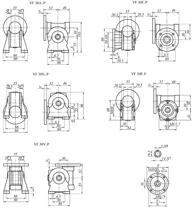 VF蝸輪蝸桿減速機(jī)外形及安裝尺寸