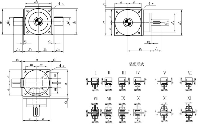SPV型換向器外形連接尺寸輸出軸加強(qiáng)型)