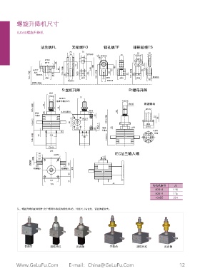 注:螺旋升降機配置附件:安全螺母SN和反齒隙裝置AB,外形尺寸有變化,請咨詢格魯夫。