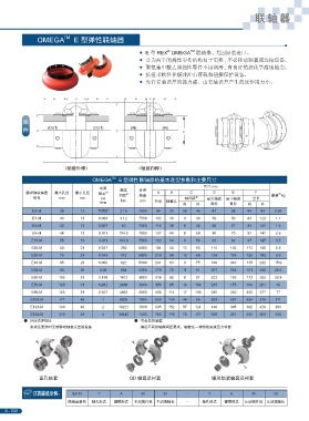奧米伽聯(lián)軸器 最大孔徑 最小孔徑 額定 ① 扭矩 ① 轉速 A B C D E F 重量 kg